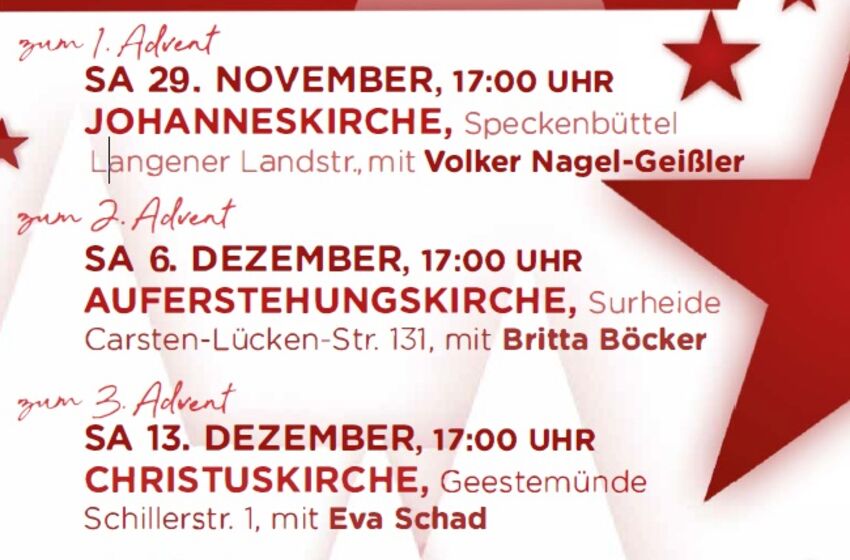 Die Ev.-luth. Christuskirche in Geestemünde feiert in diesem Jahr ihr 150-jähriges Bestehen, daher lädt die Marien- und Christuskirchengemeinde vom 9. bis 16. November 2025 zu einer großen ...